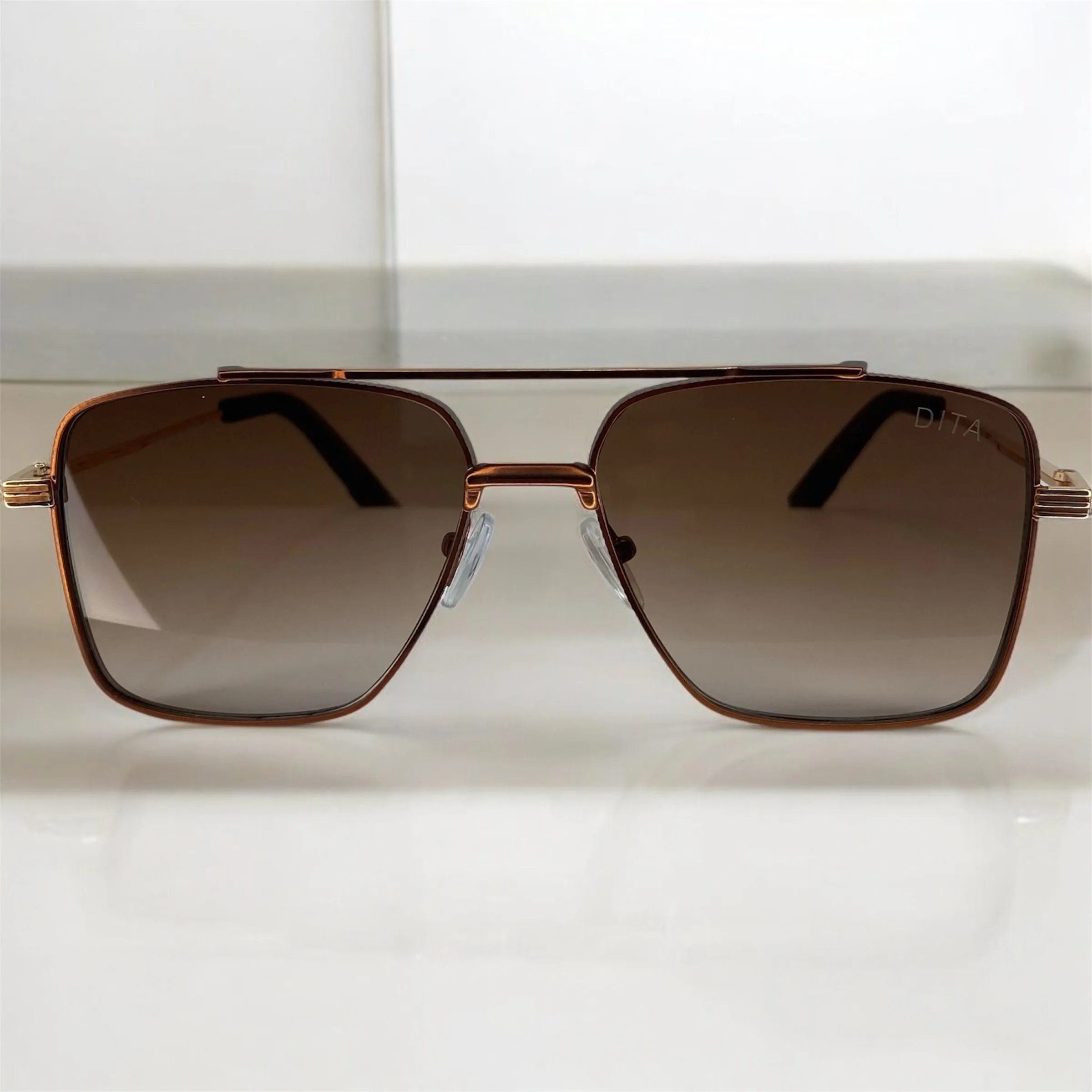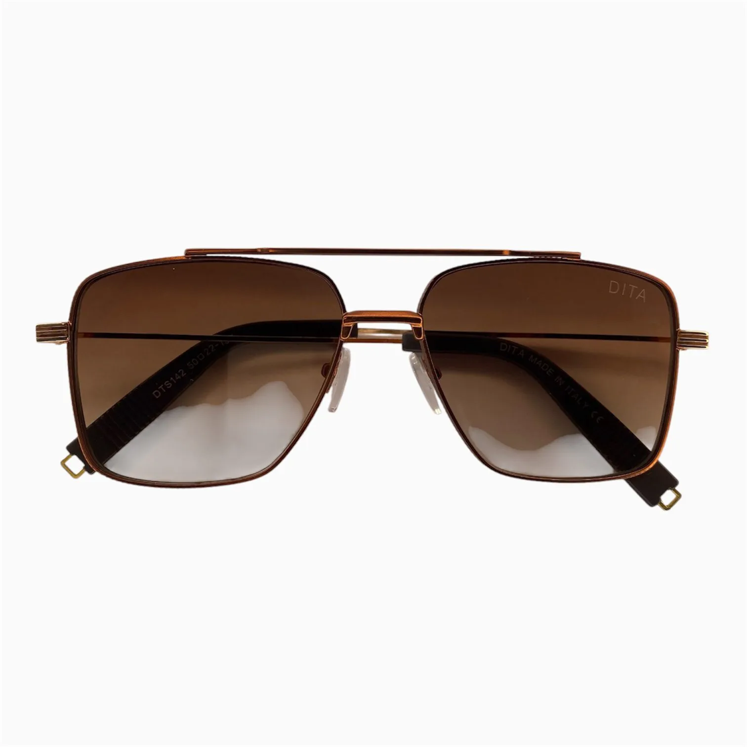 اگر دنبال عینکی هستی که هم طراحی خاص و لوکس داشته باشه، هم از نظر کیفیت حرف اول رو بزنه، عینک آفتابی DITA DTS142 انتخابیه که سلیقه خاص و نگاه حرفهای رو به خوبی نشون میده. این مدل با الهام از سبک خلبانی مدرن طراحی شده و با ترکیب رنگ قهوهای گرم و جزئیات طلایی دستهها، ظاهری متمایز و شیک به شما میده.