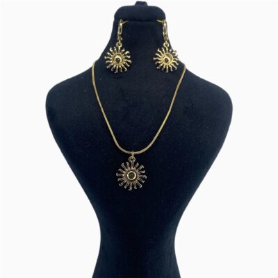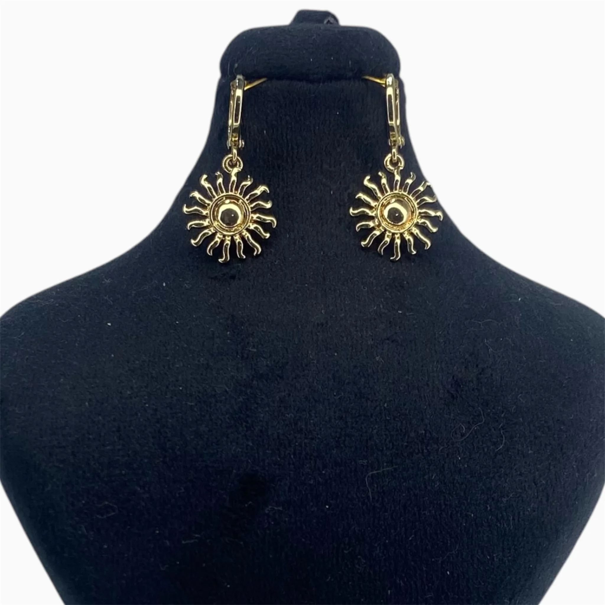 گوشواره خورشید طلایی با طراحی نمادار، آبکاری طلا و جلوه براق؛ انتخابی درخشان برای استایل رسمی، مهمانی و استفاده روزمره.